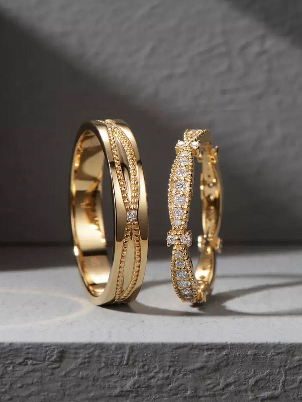 18K玫瑰金紋路鑽石對戒